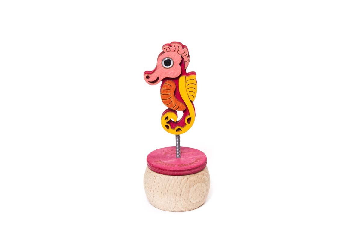Small wooden boxes to keep the first teeth. The colored animal on the cap is a precious guardian.