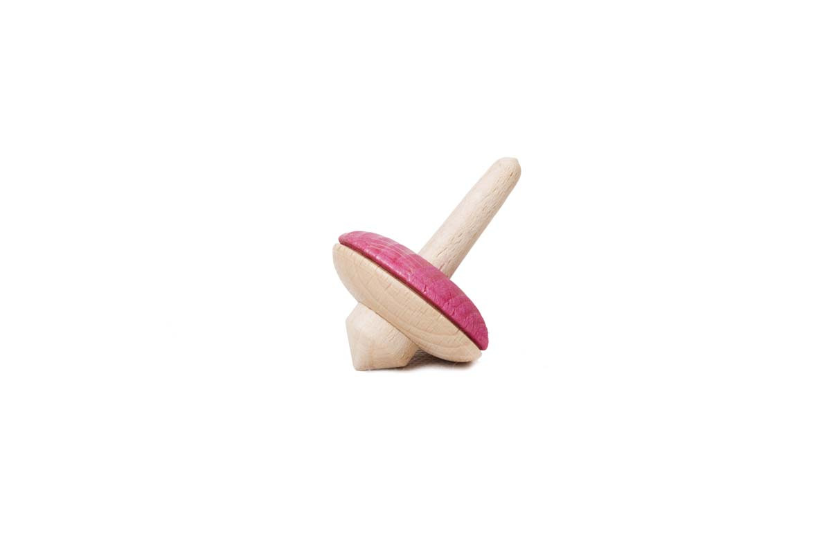 I romani la chiamavano “turbo”. La trottola, il gioco che unisce tutte le generazioni della nostra civiltà, è da noi riproposta nel suo materiale originario, il legno, e colorata con colori naturali.