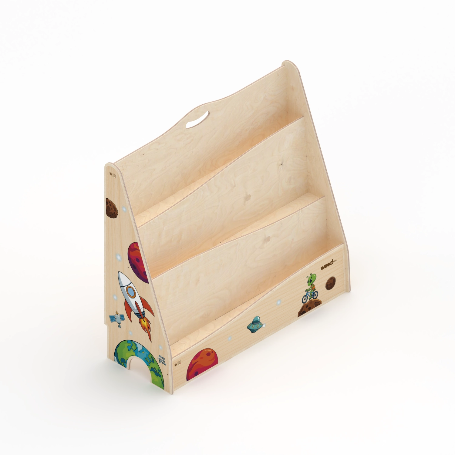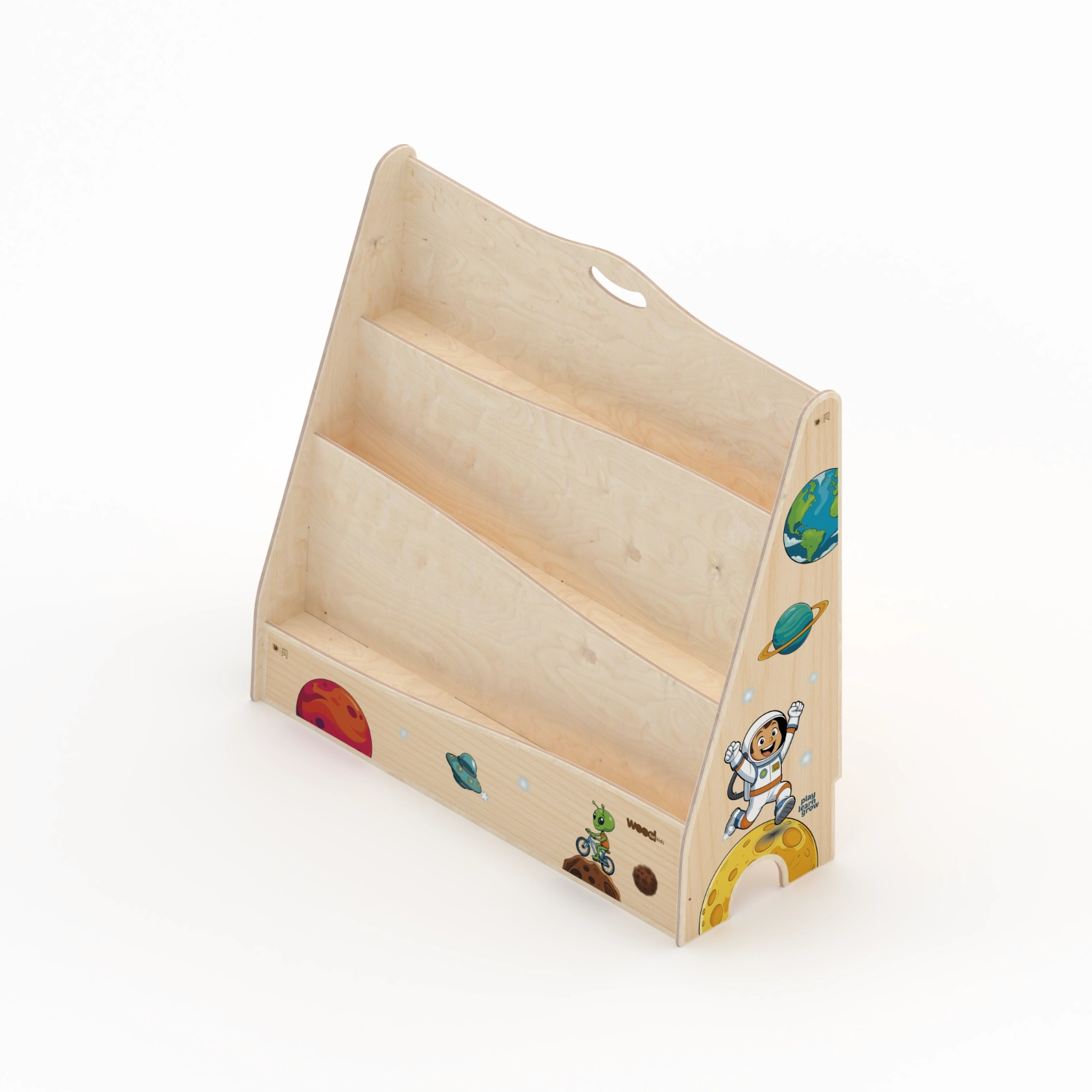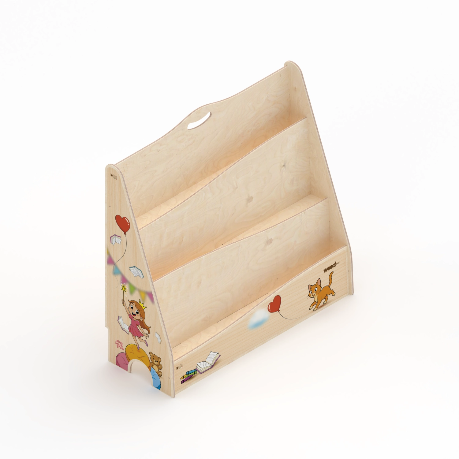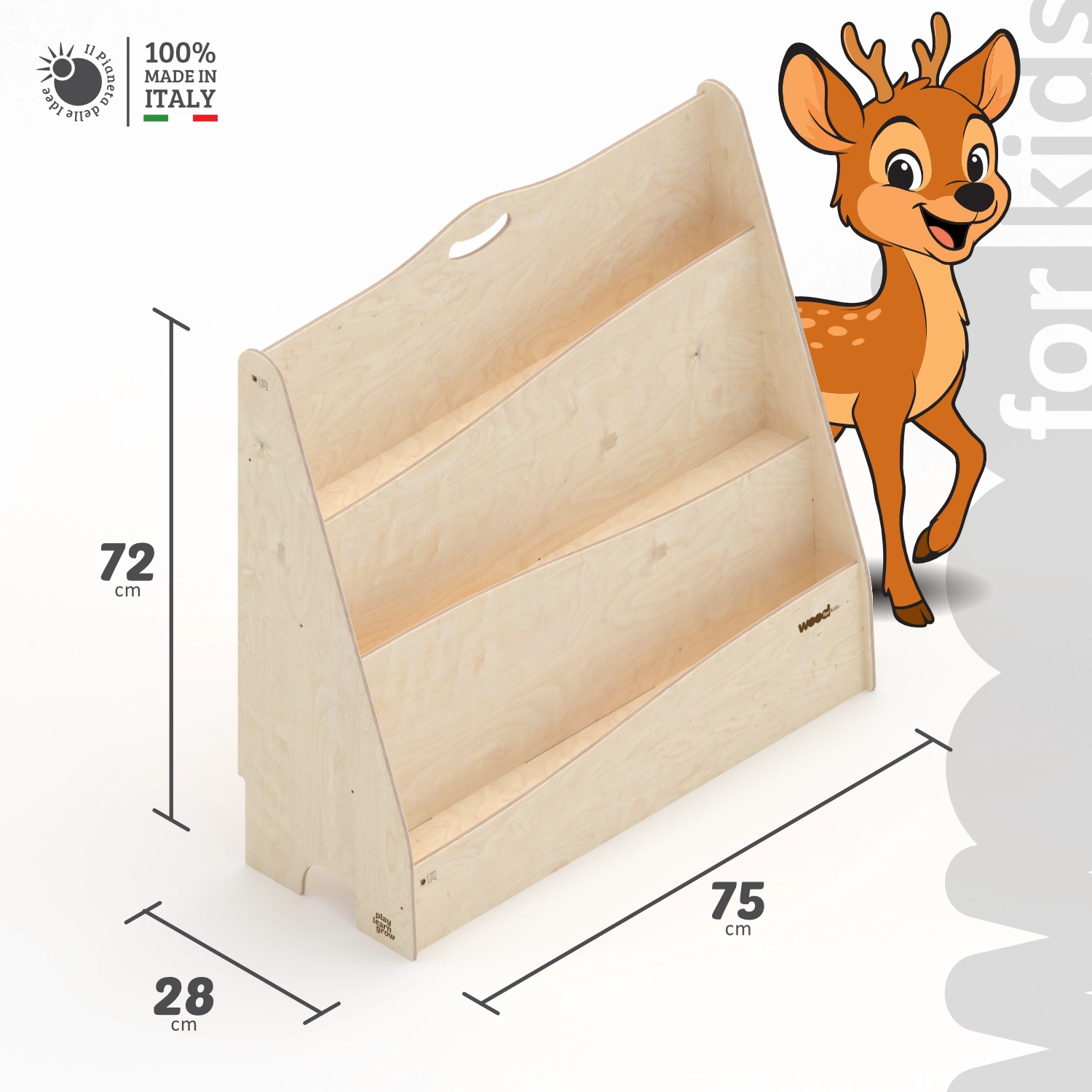 La Libreria Montessori è alta 72 cm ed ha 3 ripiani per riporre i libri. È adatta per i bambini di tutte le età che abbiano sviluppato capacità motorie e interesse verso l’interazione con i libri. Con questo strumento il bambino è incoraggiato ad avere iniziativa propria, muovendosi in uno spazio sicuro ed alla sua portata.