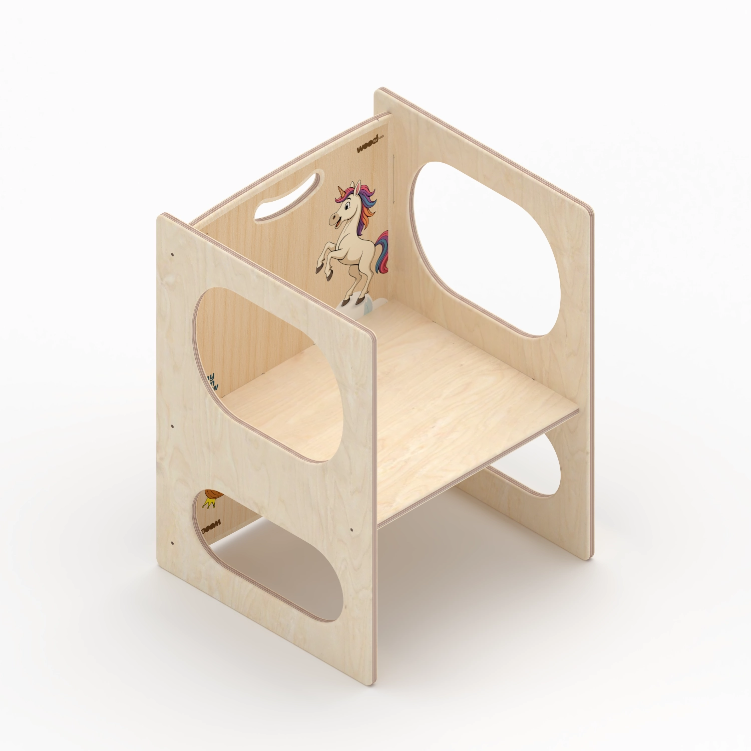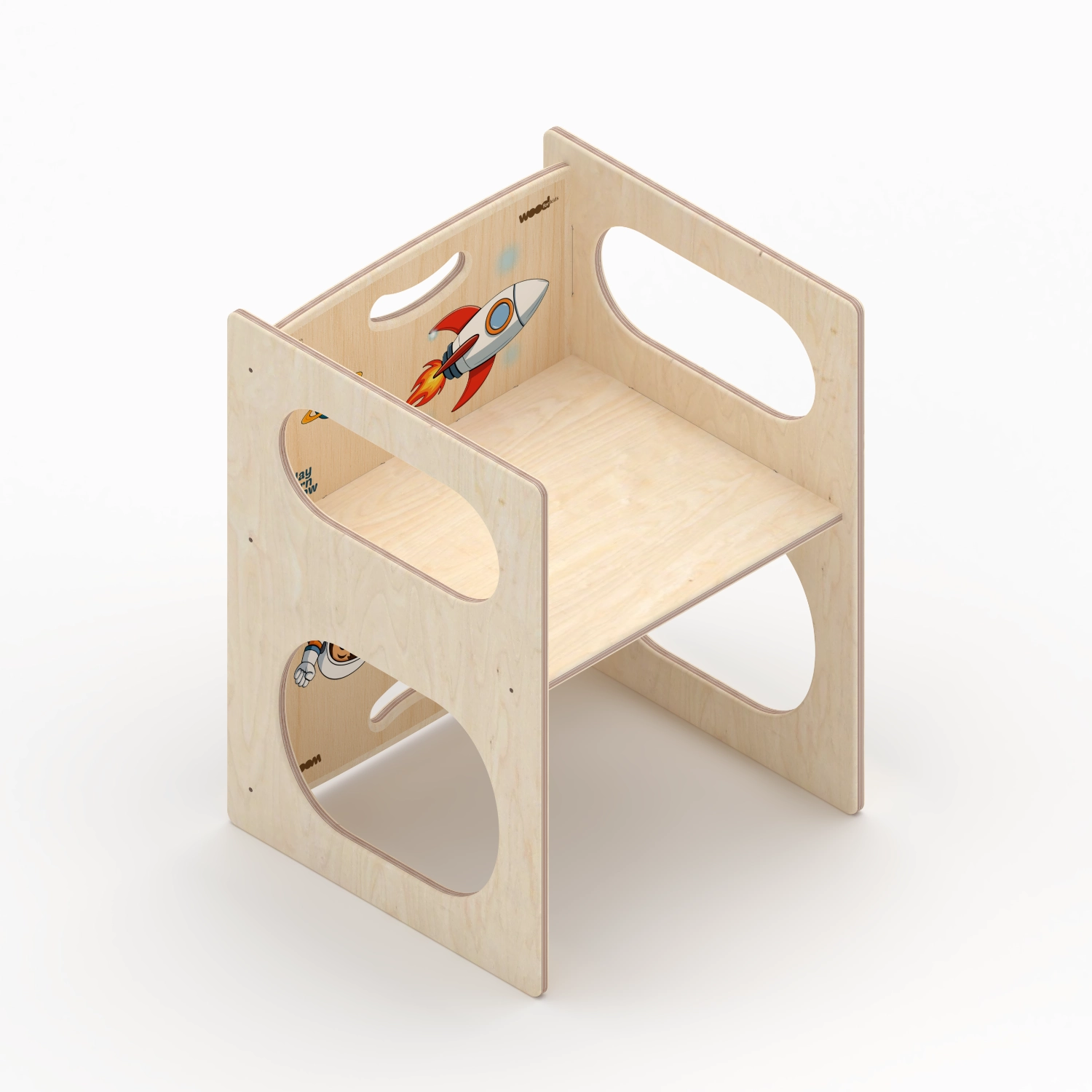 Diamo spazio al legno e alle sue caratteristiche. Le tipiche venature della betulla sono il complemento di arredo ideale per creare ambienti di gioco e di studio allegri e sereni. Lo schienale può essere naturale o decorato con le nuove fantasie del Pianeta delle Idee. Tutti gli angoli e i bordi sono stondati e levigati a mano per evitare al bambino qualsiasi tipo di infortunio.