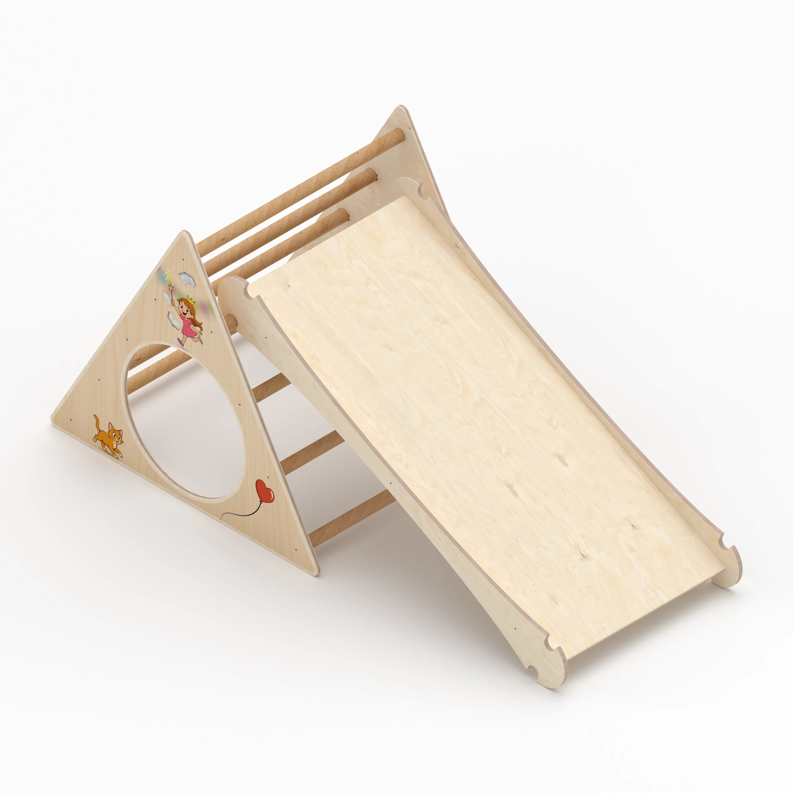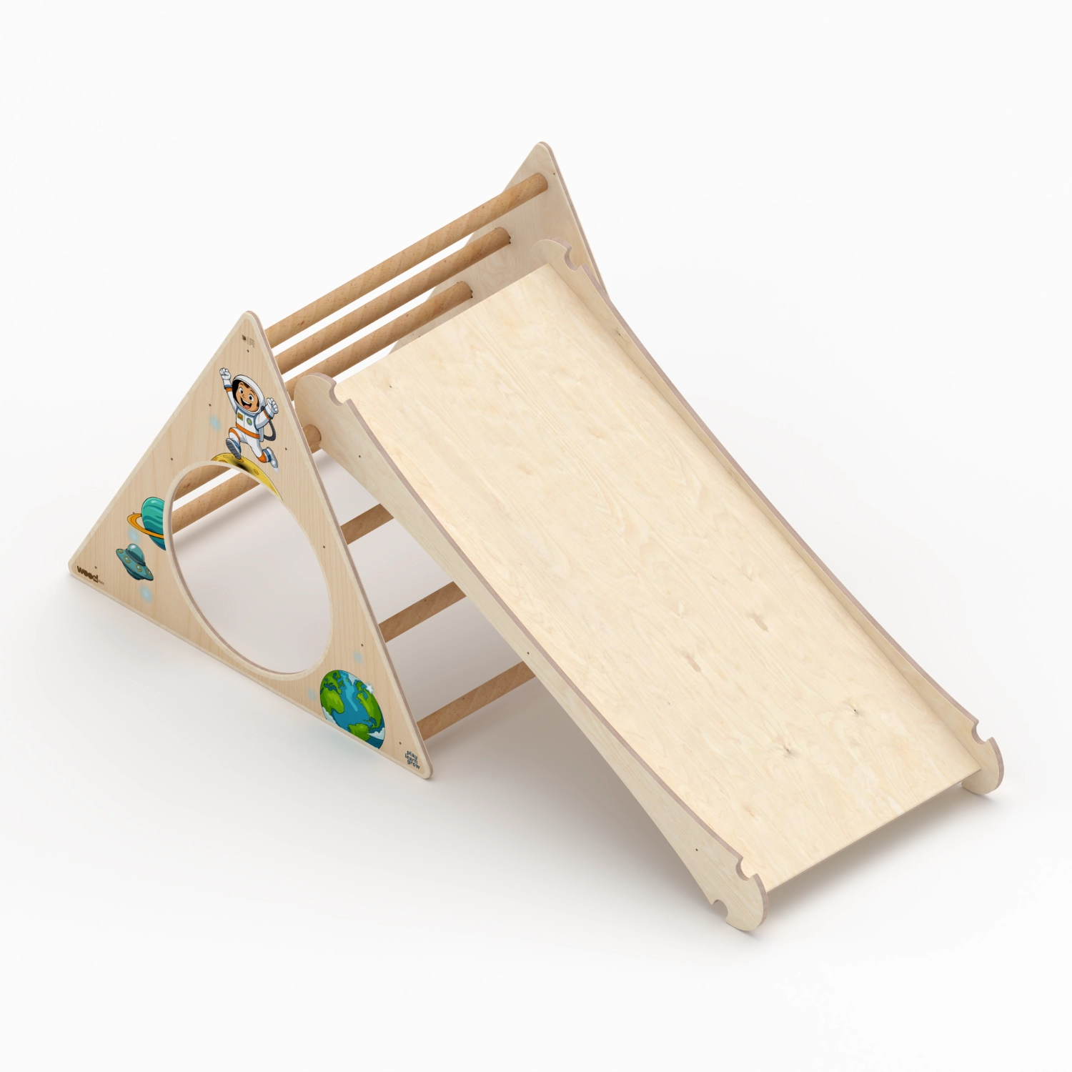 Il Triangolo di Pikler con scivolo e parete di arrampicata della linea Wood for Kids è adatto per i bambini che abbiano sviluppato le necessarie capacità motorie, seguendo autonomamente la loro inclinazione al movimento, alla posizione eretta e all’equilibrio. Con questo strumento il bambino è incoraggiato ad avere iniziativa propria, muovendosi in uno spazio sicuro ed alla sua portata.
